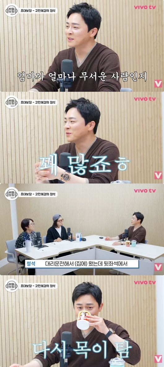 조정석은 “진짜 무섭게 혼났던 거는 대리운전해서 집에 왔는데 뒷자석에서 자고 있었던 거다. 그때는…”이라며, “집에 간다고 하니까 기다리고 있었던 거다. 오지 않아서 밖에 나와 봤더니 내가 차 뒷좌석에서 자고 있었다. 그 모습을 발견한 거미 씨는 엄청 화가 났고, 저는 어느새 집 소파에 앉아서 고개를 숙이며… “라고 에피소드를 털어놨다.