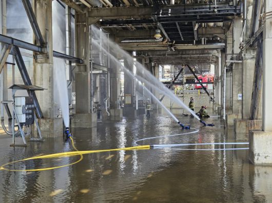 ▲17일 오전 울산시 남구 SK에너지 수소 제조 공정에 불이 나 여러 명이 다쳤다. 사진은 소방관들이 불이 난 공정에 물을 뿌려 냉각 작업을 벌이는 모습. ⓒ연합뉴스 |