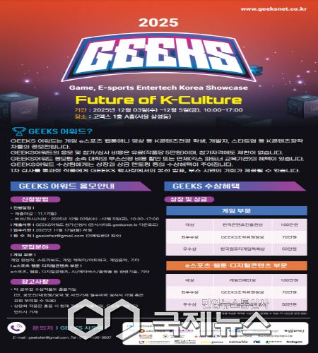 (영주=국제뉴스) 백성호 기자 = 긱스조직위원회는 게임 등 K컬처 산업 저변을 다지고 미래 주역을 발굴하는 긱스(GEEKS)가 2025년 12월 3일(수) ~ 12월 5일(금)까지 서울 삼성동 코엑스 1층 A홀에서 열린다.