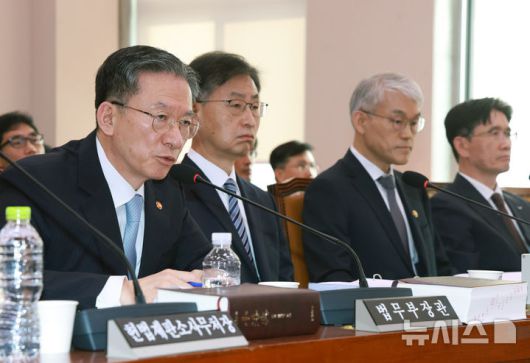 그는 '지금 중단돼 있지만 5개의 재판, 12개의 혐의, 이재명 대통령은 엄연한 피고인이다. 그런데 이게 전부 무죄라고 법제처장이 말했다. 어떻게 생각하나'는 곽 의원의 질의에 "법원의 의견을 존중해야 한다고 생각한다"고 답했다.