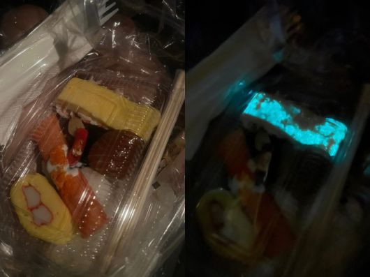 태국 유명 초밥집에서 한 여성이 구매한 초밥세트가 야광을 띠는 이색 현상을 보여 논란이 일고 있다. 전문가들은 "박테리아 오염에 따른 생물 발광 현상일 가능성이 높다"고 분석했다.