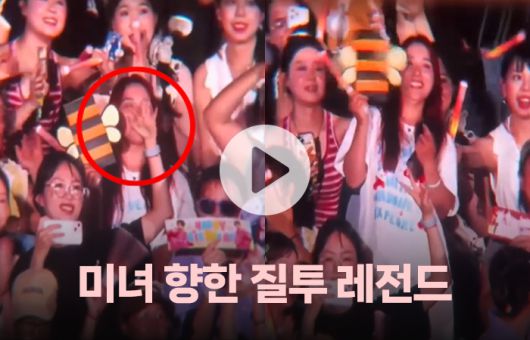 실수인 줄 알았지만 아니었습니다. 카메라에 잡힌 미녀 관객의 얼굴 위치를 확인한 후 정확하게 가린 것.