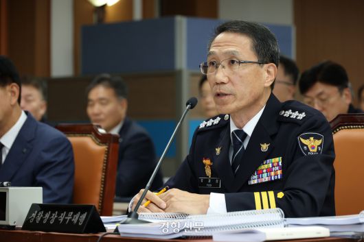 17일 서울 서대문구 경찰청에서 열린 국회 행정안전위원회 경찰청 대상 국정감사에서 유재성 경찰청장 직무대행이 의원들의 질의에 답하고 있다. 권도현 기자 |