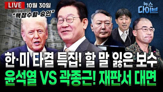 출연: 노영희 변호사, 장윤미 변호사, 박진영 정치비평가, 길윤형 한겨레 논설위원, 진행: 고현준. 건강 핑계댔던 윤... 측근엔 “술 안먹어 건강 좋아” / 윤석열, 넉달 만 ‘내란 우두머리’ 재판 출석... 곽종근 겨냥 / ‘건진 청탁 신고’ 보고 내용 입수해 건진에게 알린 김건희 / 서울시, ‘한강버스 사고 은폐’ 의혹... “노안, 숙련도 탓”? / 관세협상 극적 타결...‘연 200억 달러’ 득실은? / 이 대통령 ‘핵잠수함’ 공개 요청 배경은? / 트럼프의 계속된 ‘러브콜’... 북한은 ‘미사일 발사’. 오늘 (10월 30일) 뉴스 다이브 많은 시청바랍니다. 제작: 뉴스영상부