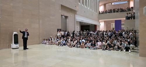 역사의길에서 유홍준 관장과 함께한 관람객 |