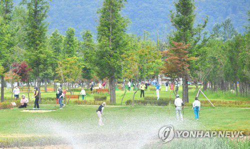 (화천=연합뉴스) 이상학 기자 = 화천군이 파크골프 성지로 만들고자 다양한 대회를 열고 있는 가운데 학교 수업 편성과 시설 확충 등으로 저변을 확대하고 있다.