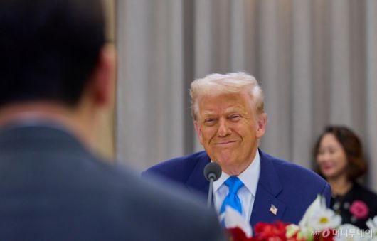 도널드 트럼프 미국 대통령이 지난 29일 경북 경주박물관에서 한미 확대 오찬회담에서 이재명 대통령을 바라보고 있다. / 사진=뉴스1 |