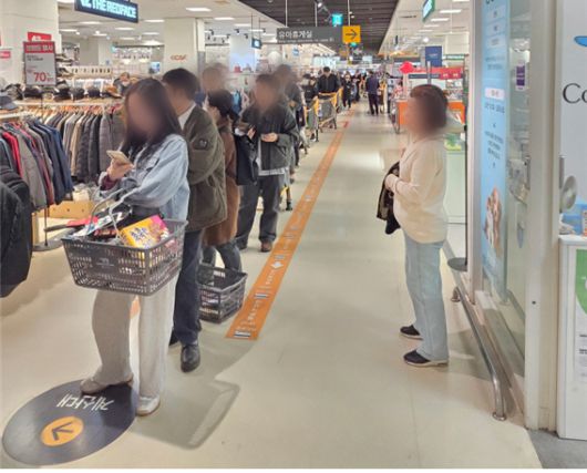 30일 이마트 자양점에서 고객들이 계산을 위해 줄 서서 대기하고 있다./이태경 인턴 기자 |