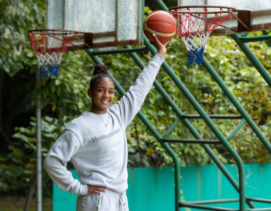 지난 2022년 여자프로농구 신입선수 선발회에 참가 신청한 동포선수 키아나 스미스가 경기도 용인시 기흥구 보정로 삼성트레이닝센터 체육관 인근에서 본지와 인터뷰를 갖고 포즈를 취하고 있다. /박상훈 기자 |