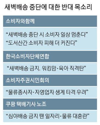지방에서도 비슷한 불만이 터져나왔다. 한 유통업계 관계자는 "도서·산간 지역 등 오프라인 유통망이 부족한 곳은 문 앞 배송조차 어려운 경우가 많다"며 "지금은 새벽배송 제한을 논의할 때가 아니라 전국 어디서나 빠르고 편리하게 택배를 받을 수 있는 실질적 방안을 논의할 때"라고 강조했다.