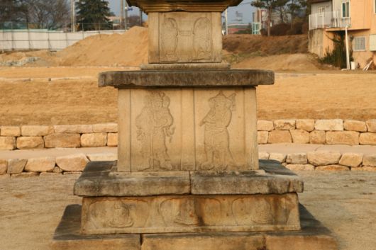 오층석탑은 장중하고 안정감이 느껴지는 탑으로 꼽힌다. 아래층 기단에는 부처의 가르침을 전파하는 상징인 사자상을 사실적으로 표현했고 위층에는 불교의 여덟 수호신인 팔부중상을 섬세하게 조각했다.