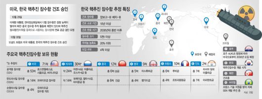 또 국제 핵비확산 체제(NPT)하에 핵연료의 재처리·농축·이전이 모두 엄격히 규제되고 있다. 한미원자력협정은 한국이 핵연료를 직접 재처리하거나 농축하는 행위를 금지하고 있으며, 핵잠수함에 필요한 고농축 우라늄(HEU) 사용도 원칙적으로 불허한다. 이 대통령이 이번 협상을 통해 '핵연료 조달의 법적 제약 해소'를 요청하면서 문제는 해결될 가능성이 높아보인다. 미국은 최근 호주에 핵추진잠수함 지원을 추진하면서 핵확산에 나선다는 비난을 사전에 차단하기 위해 핵추진잠수함이 '핵무장' 잠수함이 아니라는 점을 강조한 바 있다. 이는 한국이 핵추진잠수함 개발을 추진하더라도 그것이 '핵무장' 잠수함은 아니므로 핵확산과는 무관하다는 점을 국제사회에 어필할 수 있다.