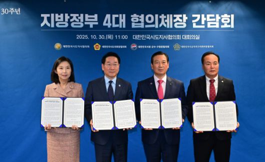 대한민국시도지사협의회, 대한민국시도의회의장협의회, 대한민국시장군수구청장협의회, 대한민국시군자치구의회의장협의회 등 4대 협의체 대표단은 30일 지방자치제 시행 30주년을 맞아 간담회에서 열고 "민생회복 소비쿠폰, 농어촌 기본소득 시범사업 등 주요 정책이 지방재정에 큰 부담을 주면서도 지방정부와의 사전 협의 없이 추진됐다"고 말했다.