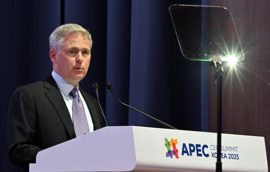 앤서니 쿡 마이크로소프트(MS) 부사장이 30일 경북 경주 예술의 전당에서 열린 아시아·태평양경제협력체(APEC) 최고경영자(CEO) 서밋에서 발언하고 있다. 공동취재 |