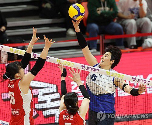 (광주=연합뉴스) 조남수 기자 = 30일 광주 서구 페퍼스타디움에서 열린 프로배구 V리그 여자부 페퍼저축은행과 현대건설의 경기. 현대건설 김희진이 연타 공격하고 있다. 2025.10.30