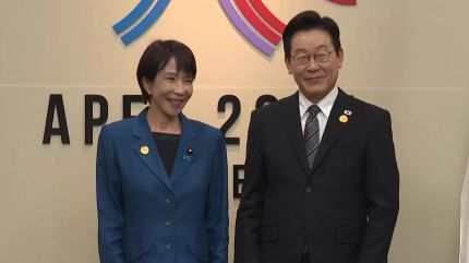 이재명 대통령이 APEC 정상회의 참석차 경주를 찾은 다카이치 사나에 신임 일본 총리를 밝은 표정으로 맞이합니다.