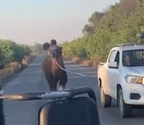 지난 27일 우크라이나군의 한 부대가 공개한 영상에는 우크라이나 병사들이 도로 위에서 손상된 M-113 장갑차를 수리하는 모습이 담겼다. 이어 전방에서 병사들을 태운 흰색 픽업트럭이 도착하는데, 그 뒤를 쌍봉낙타 한 마리가 트럭과 연결된 줄에 묶여 터덜터덜 걸어오고 있다.