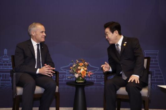 이재명 대통령과 마크 카니 캐나다 총리가 30일 경북 경주시의 한 호텔에서 정상회담을 하고 있다. [사진=연합뉴스] |