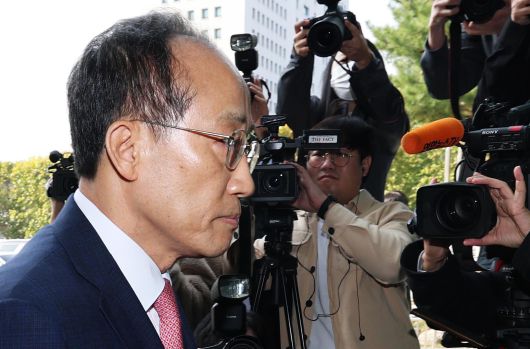 국회의 계엄해제 의결을 방해한 의혹을 받는 추경호 전 국민의힘 원내대표가 30일 오전 서울 서초구 서울고등검찰청에 마련된 내란 특검팀(특별검사 조은석) 사무실에서 피의자 신분으로 조사를 받기 위해 출석하고 있다. 2025.10.30/뉴스1 |
