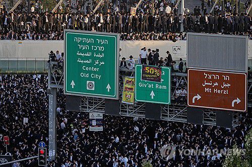 이날 오후 시위 참가자들이 예루살렘으로 대거 모여들면서 텔아비브와 이어진 1번 고속도로와 지하철, 버스 등 대중교통이 사실상 마비됐습니다.