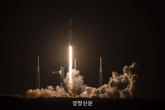 군사정찰위성 4호기를 탑재한 발사체 ‘팰컨9’이 지난 4월22일 오전 9시 48분(현지시간 21일 오후 8시 48분) 미국 플로리다주 케이프커내버럴 우주군 기지에서 발사되고 있다. 국방부 제공 |