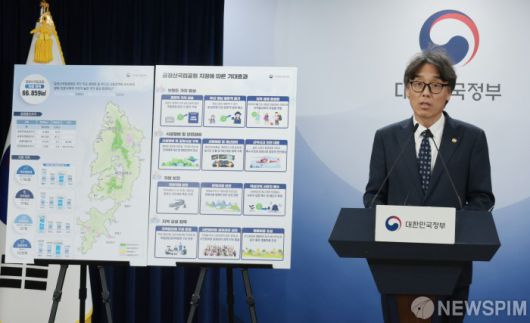 [서울=뉴스핌] 이길동기자= 금한승 기후에너지환경부 제1차관이 31일 서울 종로구 정부서울청사에서 금정산 국립공원 지정 심의 결과를 브리핑하고 있다.2025.10.31 photo@newspim.com |