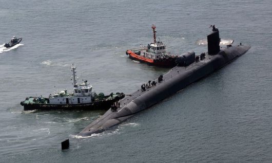 미국 해군의 전략핵잠수함 미시간호가 2023년 부산 해군기지에 입항하는 모습. 연합뉴스 |