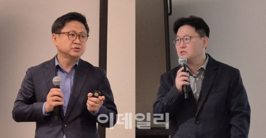 홍성준 제넥신 경영 총괄 대표(좌)와 최재현 제넥신 R&D 총괄 대표(우)는 31일 오전 10시 서울 강서구 마곡 본사에서 하반기 주주간담회를 열고 회사 현황에 대해 공유했다. (사진=김새미 기자) |