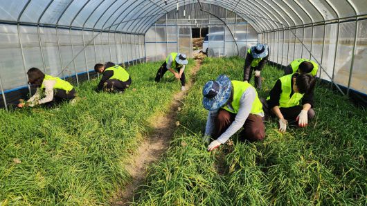 NH투자증권은 '농심천심 운동'의 일환으로, 농촌일손돕기 봉사활동을 진행했다고 31일 밝혔다. NH투자증권 임직원 20여명은 이날 양평군 양동면 고송리 부추 농가를 찾아 비닐하우스 내에서 잡초제거 작업을 지원했다.
