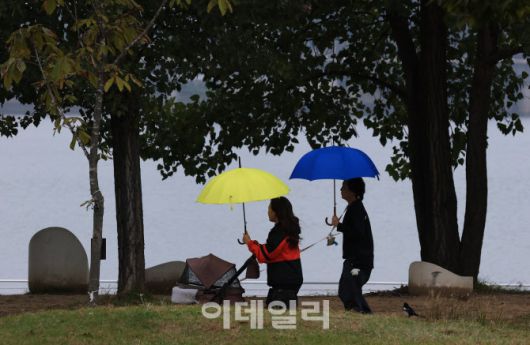 전국이 흐린 가운데 완연한 가을 날씨를 보인 지난 26일 서울 영등포구 여의도 한강시민공원에서 시민들이 우산을 쓰고 산책을 하고 있다. (사진=노진환 기자) |