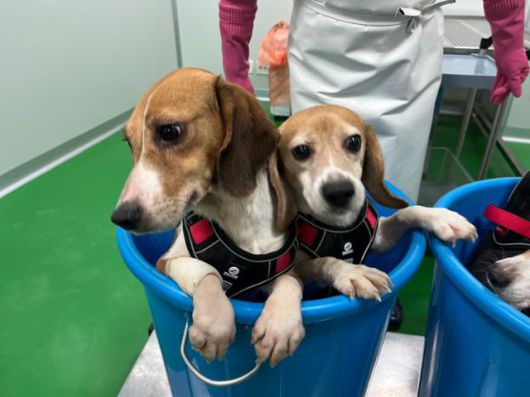 27일 한 제약회사로부터 구조된 실험 비글들. 동물과함께행복한세상 제공 |