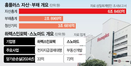 종업원수 10명 규모인 스노마드도 마찬가지다. 지난해 매출액 116억 원과 영업이익 25억 원을 올렸지만 73억 원의 당기순손실을 기록했다. 현시점 홈플러스의 부동산 자산 규모가 장부가로 2조 5000억 원 실질적으로 그 절반에 해당한다는 평가지만 이를 개발해 가치를 높이기는 쉽지 않은 후보라는 평가다.