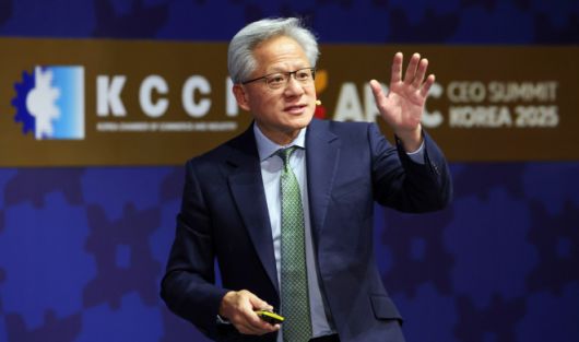 연설하는 젠슨 황 엔비디아 최고경영자 - 젠슨 황 엔비디아 최고경영자(CEO)가 31일 경북 경주 예술의전당에서 열린 아시아태평양경제협력체(APEC) 최고경영자(CEO) 서밋에서 특별세션 기조연설을 하고 있다. 2025.10.31 공동취재 |