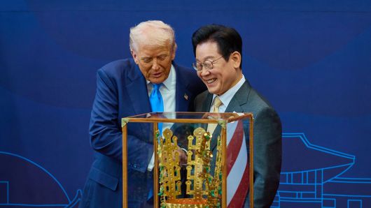 2025년 10월 30일 오후 1시쯤 부산 김해공항, 미국 대통령 전용기 에어포스원이 올 때는 없었던 신라 왕관 모형과 무궁화대훈장을 싣고 활주로를 떠올랐다. 29일 오전 10시 32분 김해공항에 착륙한 이후 26시간 30분만이다.
