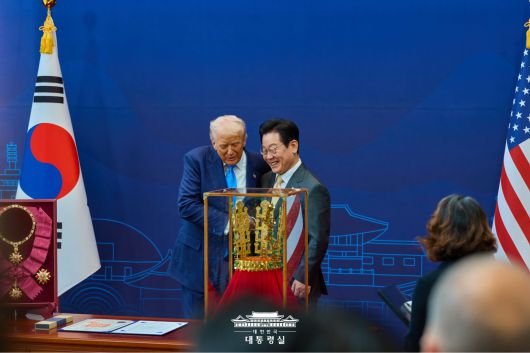 올해는 해방 80주년이다. 지난 80년 동안 미국은 우리에게 늘 상수였고, 기본값이었고, 거역할 수 없는 장벽이었다. 우리는 얼마나 국력을 더 키워야 미국에게 진정한 동반자이자 동맹 관계를 요구할 수 있을까. 한미 관계의 참담한 비대칭성은 국력보다는 우리의 상상력이 숭미의 틀 안에 갇혀있기 때문은 아닐까. 이재명 대통령이 선물로 준 복제 신라 왕관이 미국 현지에서 온갖 토크쇼의 소재로 사용되고 있는 것도 씁쓸하다.