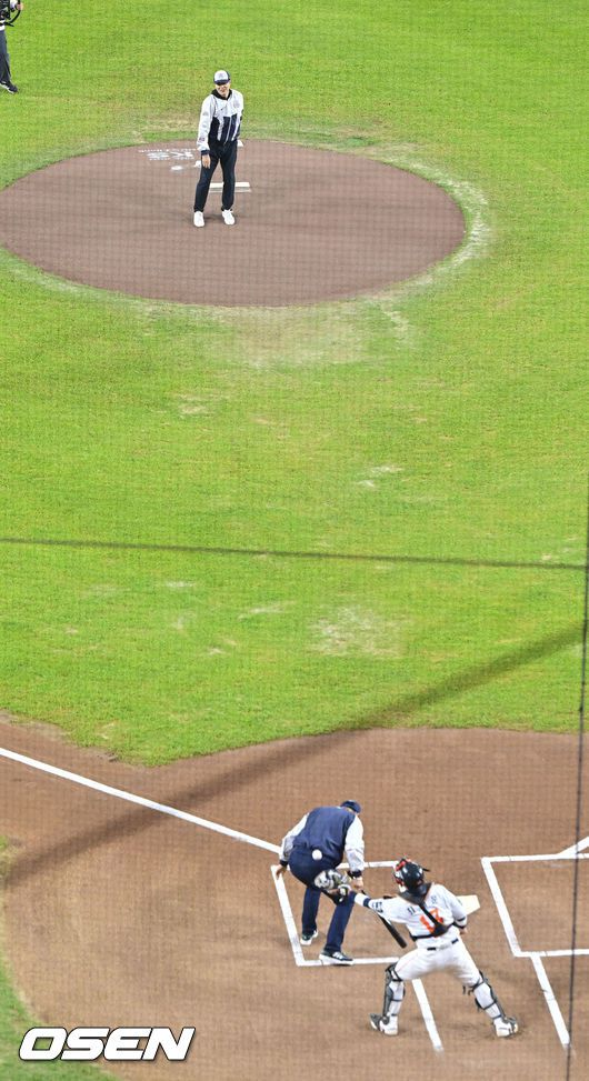 [OSEN=대전, 박준형 기자] 31일 대전 한화생명볼파크에서 2025 신한 SOL Bank KBO리그 포스트시즌 한국시리즈 5차전 한화 이글스와 LG 트윈스의 경기가 열렸다. 이날 경기에 한화는 문동주를, LG는 톨허스트를 선발투수로 내세웠다. 경기 앞서 한화 레던드 정민철과 장종훈이 시구 시타를 하고 있다 . 2025.10.31 / soul1014@osen.co.kr
