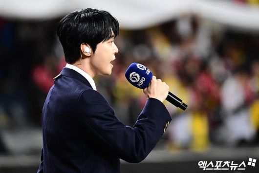 (엑스포츠뉴스 대전, 박지영 기자) 31일 오후 대전한화생명볼파크에서 열린 '2025 신한 SOL Bank KBO 한국시리즈' LG 트윈스와 한화 이글스의 경기에 앞서 NCT 도영이 애국가를 제창하고 있다.박지영 기자 jypark@xportsnews.com