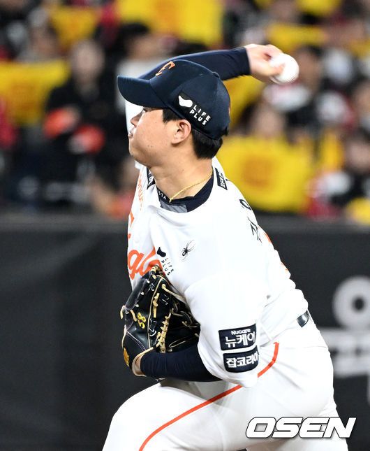 [OSEN=대전, 이대선 기자] 31일 대전 한화생명볼파크에서 2025 신한 SOL Bank KBO리그 포스트시즌 한국시리즈 5차전 한화 이글스와 LG 트윈스의 경기가 열렸다. 이날 경기에 한화는 문동주를, LG는 톨허스트를 선발투수로 내세웠다. 5회초 무사 1루에서 한화 김종수가 역투하고 있다. 2025.10.31 /sunday@osen.co.kr