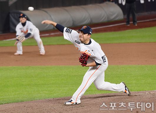 [대전=스포츠투데이 권광일 기자] 2025 신한은행 SOL Bank KBO리그 한국시리즈 5차전 LG트윈스와 한화 이글스의 경기가 31일 대전한화생명 볼파크에서 열렸다. 한화 주현상이 6회초 구원 등판해 역투하고 있다. 2025.10.31. [스포츠투데이 권광일 기자 sports@stoo.com]