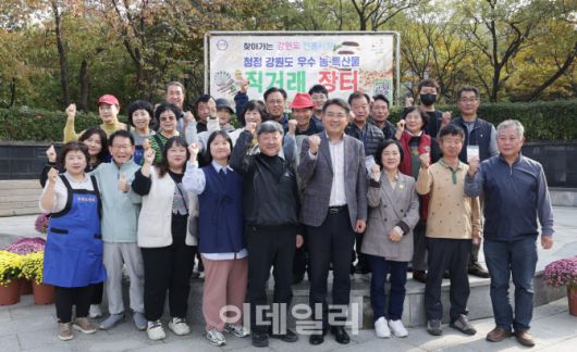[이데일리 김태형 기자] 오승록 노원구청장이 31일 중계근린공원에서 열린 ‘2025 강원 직거래 장터’에 방문해 참석자들과 기념촬영을 하고 있다.