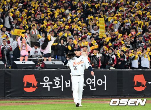 [OSEN=대전, 이대선 기자] 31일 대전 한화생명볼파크에서 2025 신한 SOL Bank KBO리그 포스트시즌 한국시리즈 5차전 한화 이글스와 LG 트윈스의 경기가 열렸다. 이날 경기에 한화는 문동주를, LG는 톨허스트를 선발투수로 내세웠다. 9회초 1사 1루에서 한화 류현진이 LG 구본혁에게 안타를 허용하고 아쉬워하고 있다. 2025.10.31 /sunday@osen.co.kr