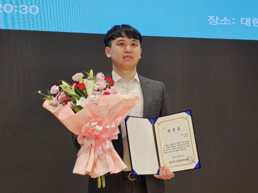 투표결과 발표 이후 당선증을 들고 사진 촬영 중인 한성존 신임 대전협 회장. 이찬종 기자 |