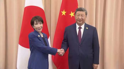 시진핑 주석과 다카이치 총리가 처음 만나 악수합니다.