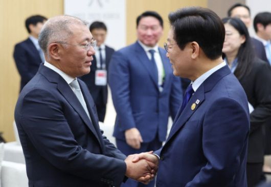 [이데일리 이로원 기자] 이재명 대통령이 경주 아시아태평양경제협력체(APEC) 정상회의를 계기로 열린 한미 정상회담에서 관세협상이 타결된 것과 관련해 정의선 현대차그룹 회장으로부터 감사 인사를 받았다.