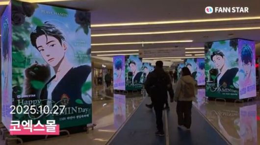 팬앤스타는 1일 서울 강남구 코엑스몰 내 전광판을 통해 광고 중인 하민 이벤트 사진을 공개했다. 하민의 팬들은 지난 9월 4일 진행된 팬앤스타 '전광판 광고'를 달성했다.