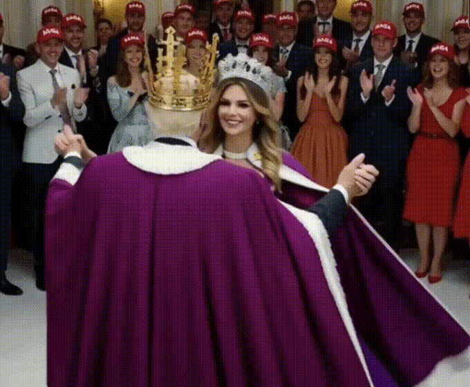 미국 토크쇼들도 "뭐 하는 거냐" "정말 부끄럽다"라며 트럼프가 금관을 받고 흡족해하는 모습을 대대적으로 비판했다.