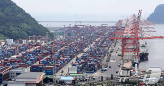 부산항 신선대부두 야적장에 컨테이너가 가득 쌓여 있는 모습. 2025.8.11/뉴스1 ⓒ News1 윤일지 기자 |
