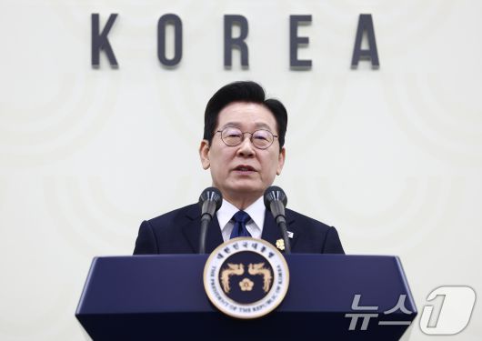 이재명 대통령이 2025 아시아태평양경제협력체(APEC) 정상회의 폐막일인 1일 오후 경북 경주화백컨벤션센터(HICO) 인근 국제미디어센터(IMC)에서 기자회견을 하고 있다. 2025.11.1/뉴스1 ⓒ News1 김민지 기자 |