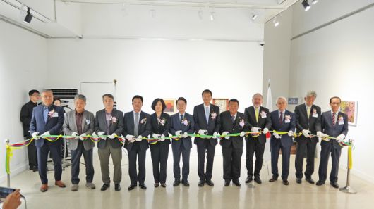 호후시 대표단이 1일 춘천미술관에서 열린 ‘제33회 한일문화예술교류전’ 개막식에 참석했다. 사진|춘천시청 |