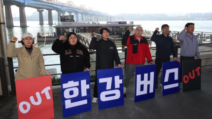 전국민주노동조합총연맹 서울본부와 서울환경연합 등은 오늘(1일) 아침 9시쯤 서울 성동구 한강버스 옥수 선착장에 모여 혈세 낭비하는 한강버스 운항을 중단하라고 촉구했습니다.